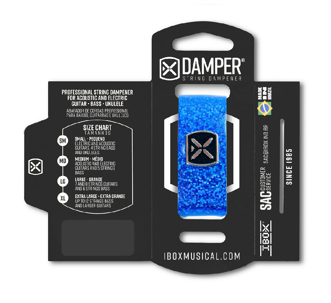 Modo de uso: Posicione o DAMPER IBOX sobre os trastes, preferencialmente nas casas 1, 4 ou 6 onde terá uma melhor resposta.